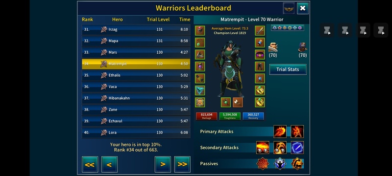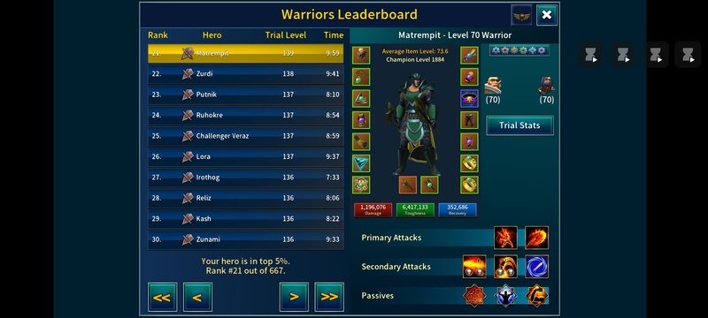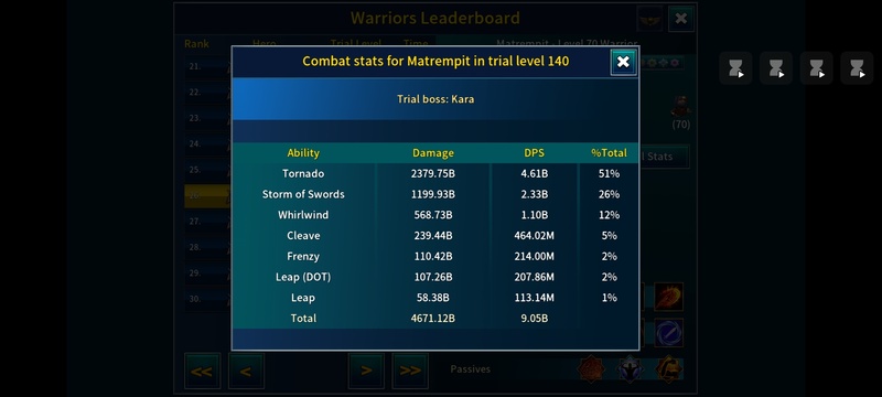 Most assuredly for me to go back to my lover: the lovable shield warrior. I admit still stuck at trial 154. Can't beat Kara at 155. But you can kill almost everythig else at ease