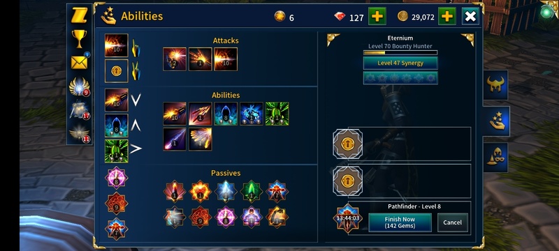 which is very expensive. and the fact u are starting a new hero with no resources so i just try farming at story mode for exp and i buy mark of titan crate which cost me 200 + the 200exp boost and the other unlocking passive/abilities and pet which cost me i think 800 gemsbelow?