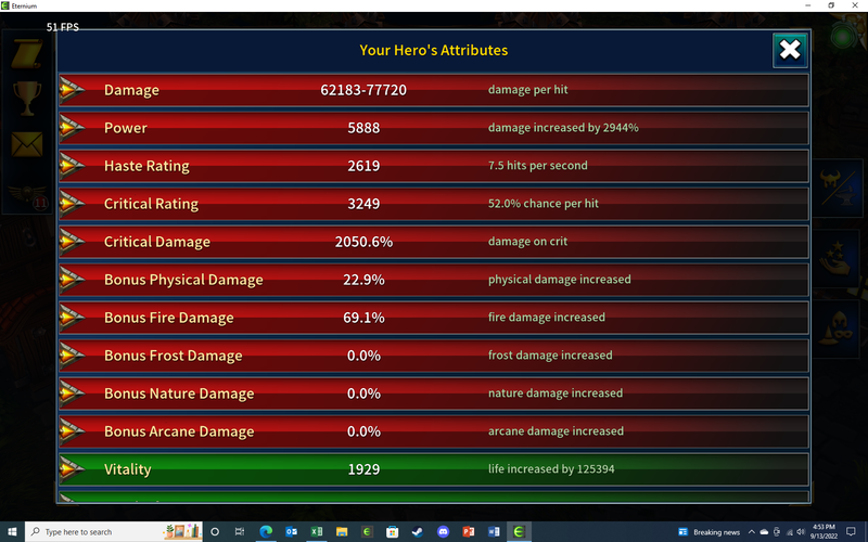 Here are my Stats, if you see something that I am missing in the extreme. I certainly will continue to tweak things.