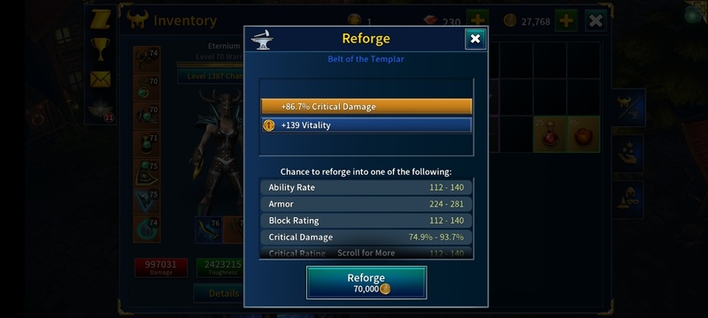 They also higher the cost in reforging Rare items, the max gold is always 55k now it keeps getting higher ans Higher! and im assuming its gonna be 100k. its just i ran out of gold. Tin Man