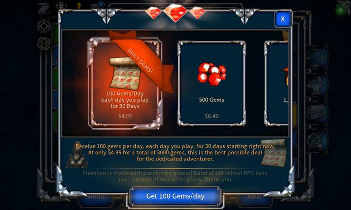 1. Remove the "each day you play" from the image - so that just leave: "100 Gems/Day for 30 Days"