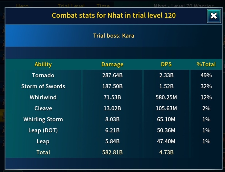 I need help understanding something else. Looking at the current leaderboards, I see characters in the top 100 with a damage level of around one million completing Trial Level 162, while my character has a damage level over three million and I can't beat Trials over level 117. How is that possible?