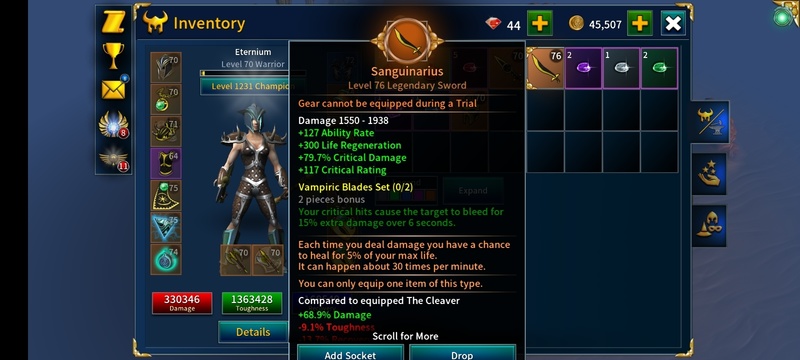 all my items i get them from farming special the sword, except the cape, talisman, vial. and the necklace and rings i just transfer those to my warrior.